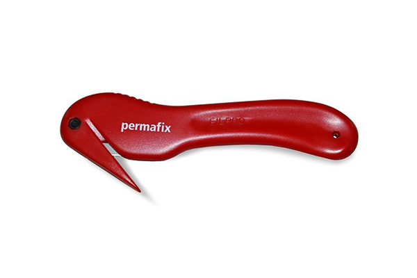 Voor het veilig en makkelijk op maat snijden van permafix. Professioneel snijmes van solide kwaliteit.Veilig werken door de speciale vorm.