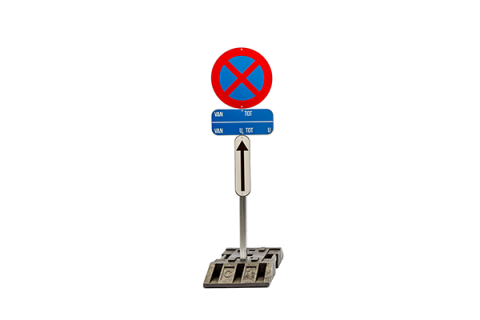 Parkeerverbodsbord E3 op paal met voet. Verkrijgbaar met grote of kleine rubberen voet In te vullen met witte verfstift of witte stickers en alcoholstift